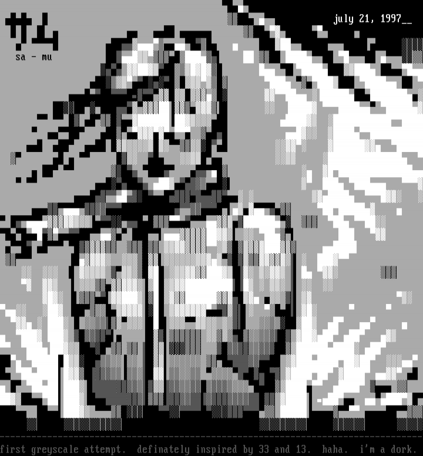 --------------------------------------------------------------------------------first greyscale attempt. definately inspired by 33 and 13. haha. im a dork.
