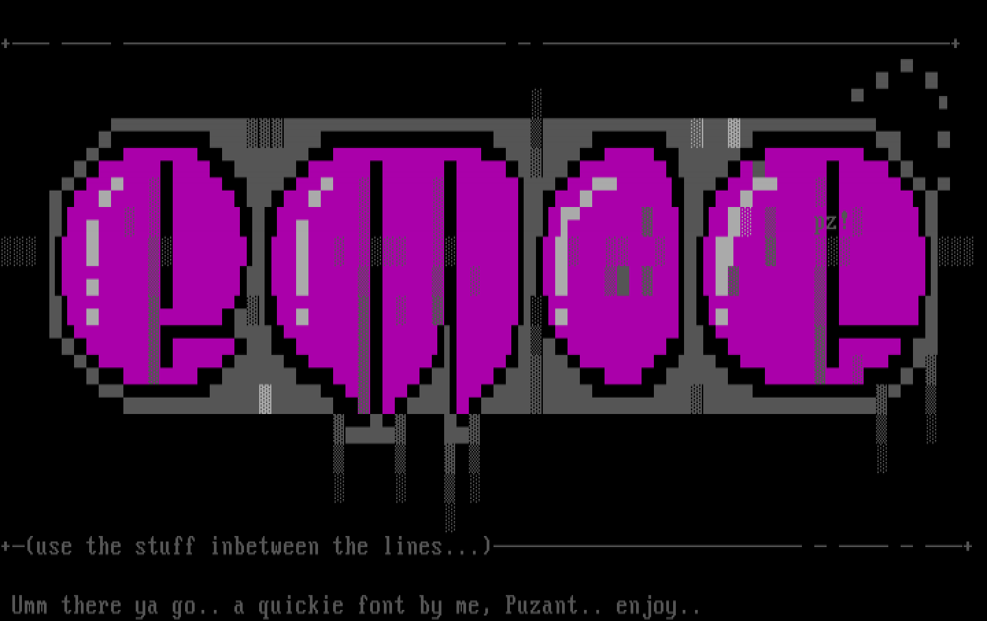 Umm there ya go.. a quickie font by me, Puzant.. enjoy..