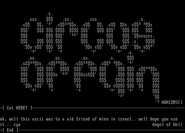 ok, well this ascii was to a old friend of mien in israel.. well hope you use