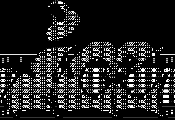 : . aZrael:. . d8. d8888888P.d88P..d888888888.:eNdow8888888P,. .d8a. . d88888888. . .d88888888888888P.8888888P,.. 88
