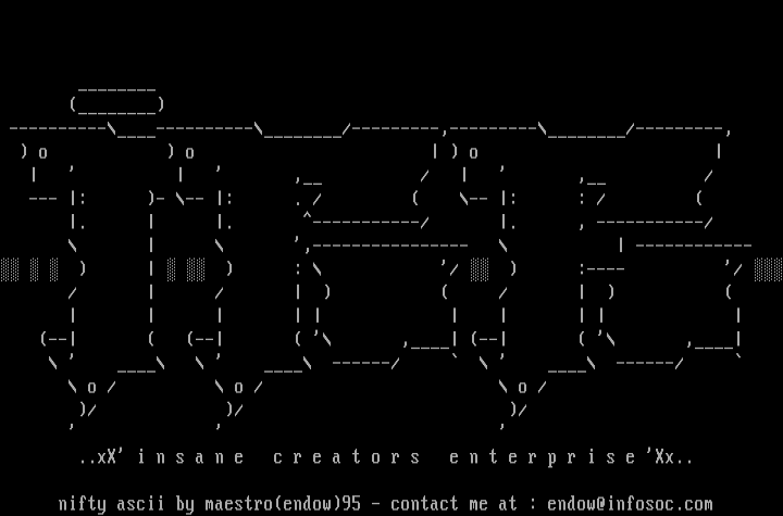 nifty ascii by maestroendow95 - contact me at : endow@infosoc.com