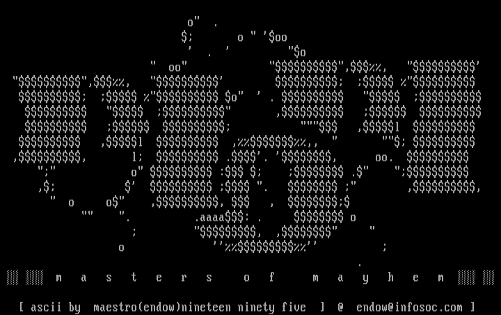 ascii by maestroendownineteen ninety five @ endow@infosoc.com