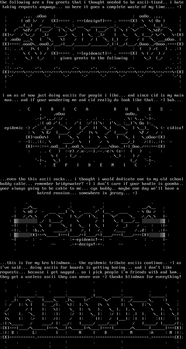 ...this is for my bro blindman... the epidemic tribute asciis continue.. as