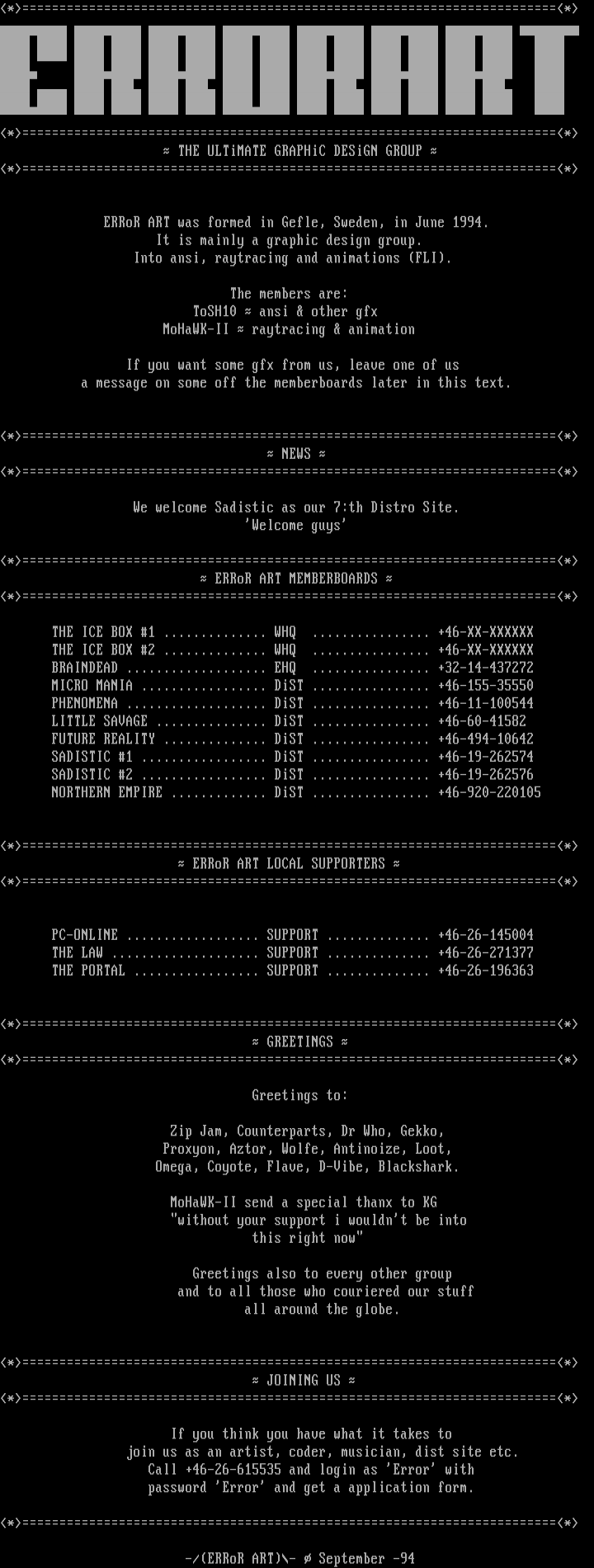 ERRoR ART was formed in Gefle, Sweden, in June 1994.
