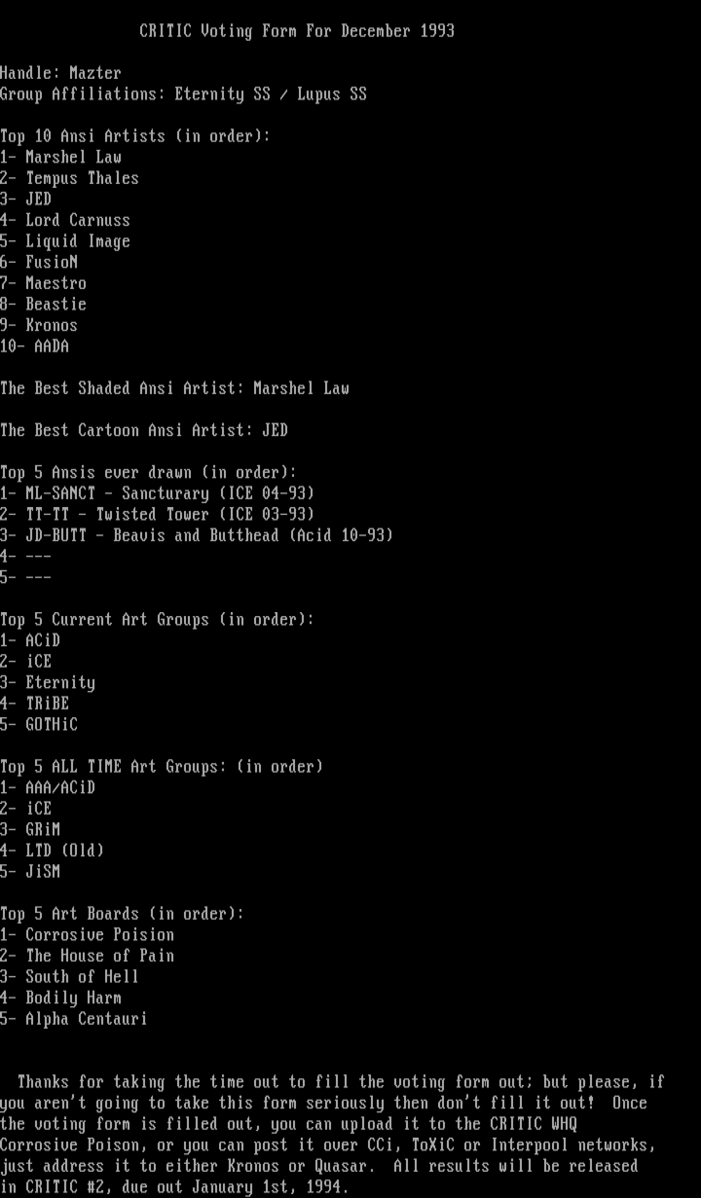 CRITIC Voting Form For December 1993