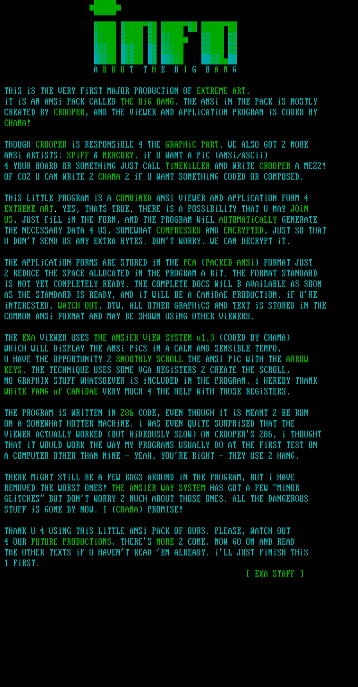 THE EXA ViEWER USES THE ANSiER ViEW SYSTEM v1.3 CODED BY CHAMA