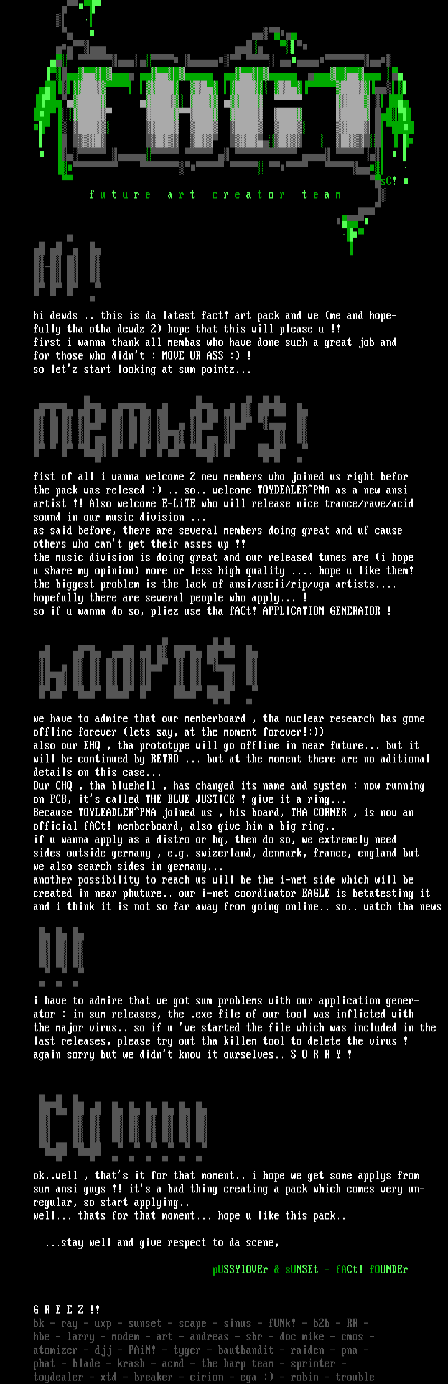 the biggest problem is the lack of ansi/ascii/rip/vga artists....