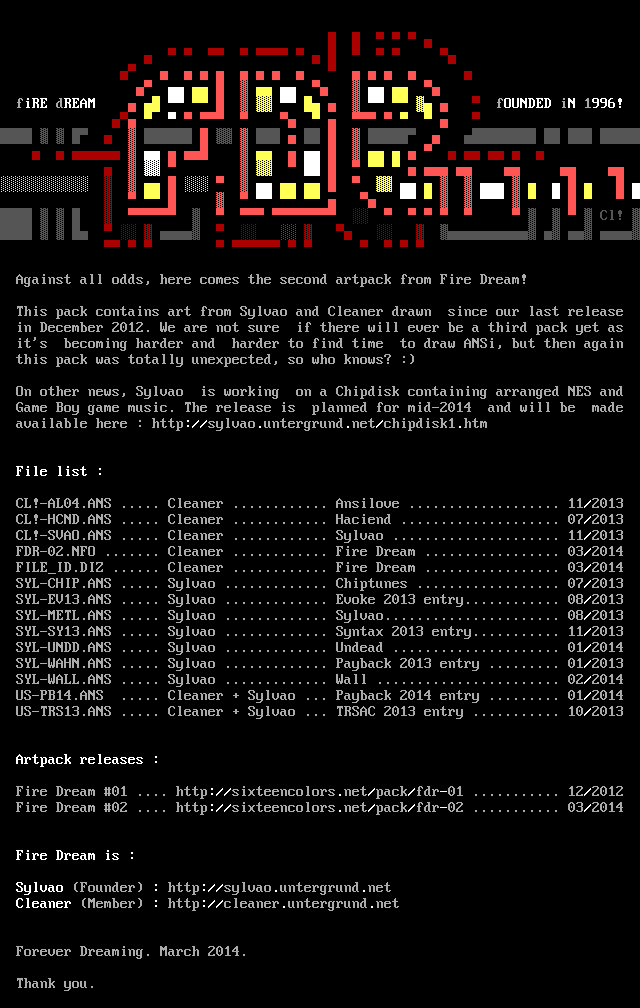 Fire Dream 02 .... http://sixteencolors.net/pack/fdr-02 ........... 03/2014