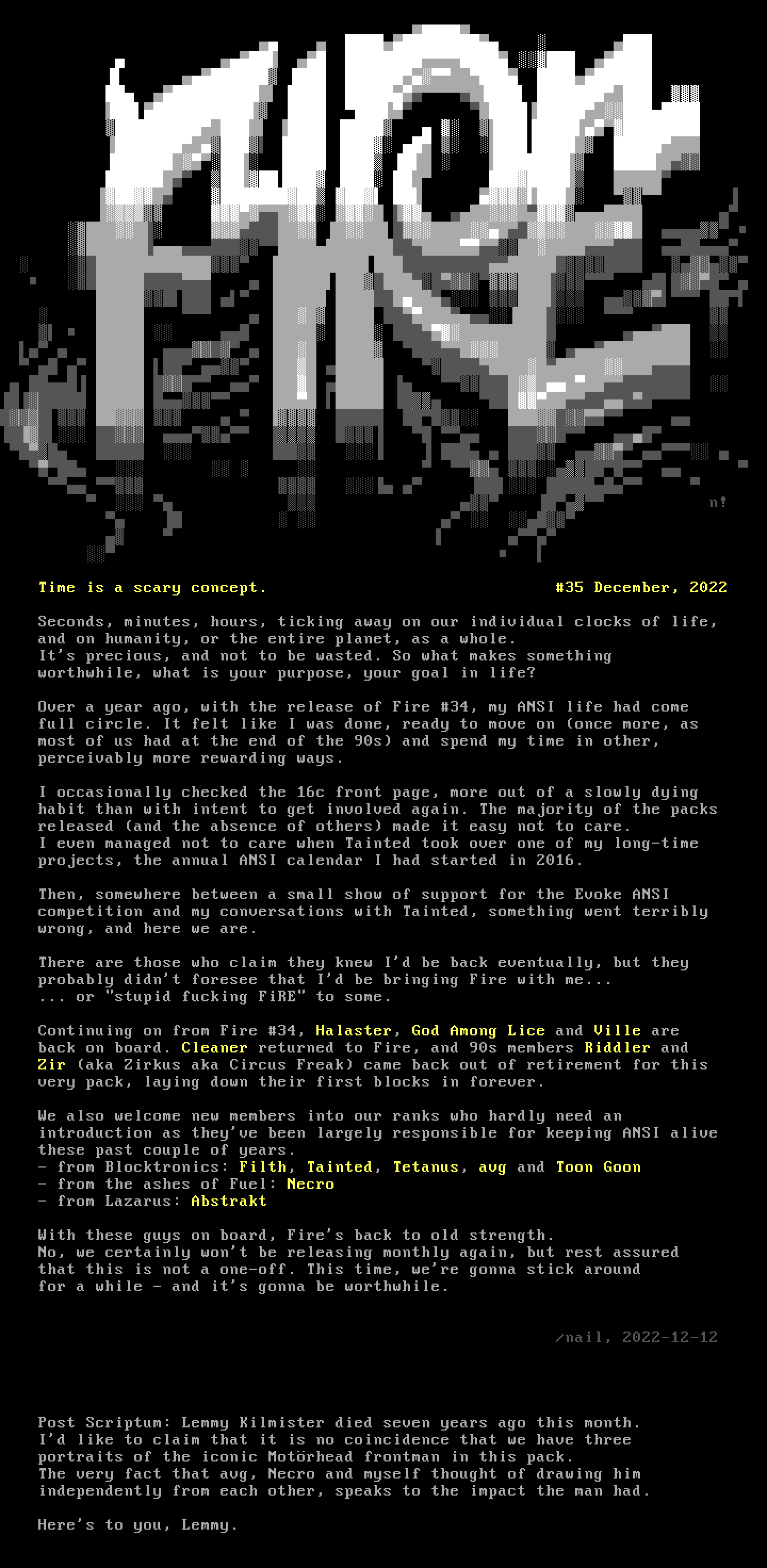 Over a year ago, with the release of Fire 34, my ANSI life had come