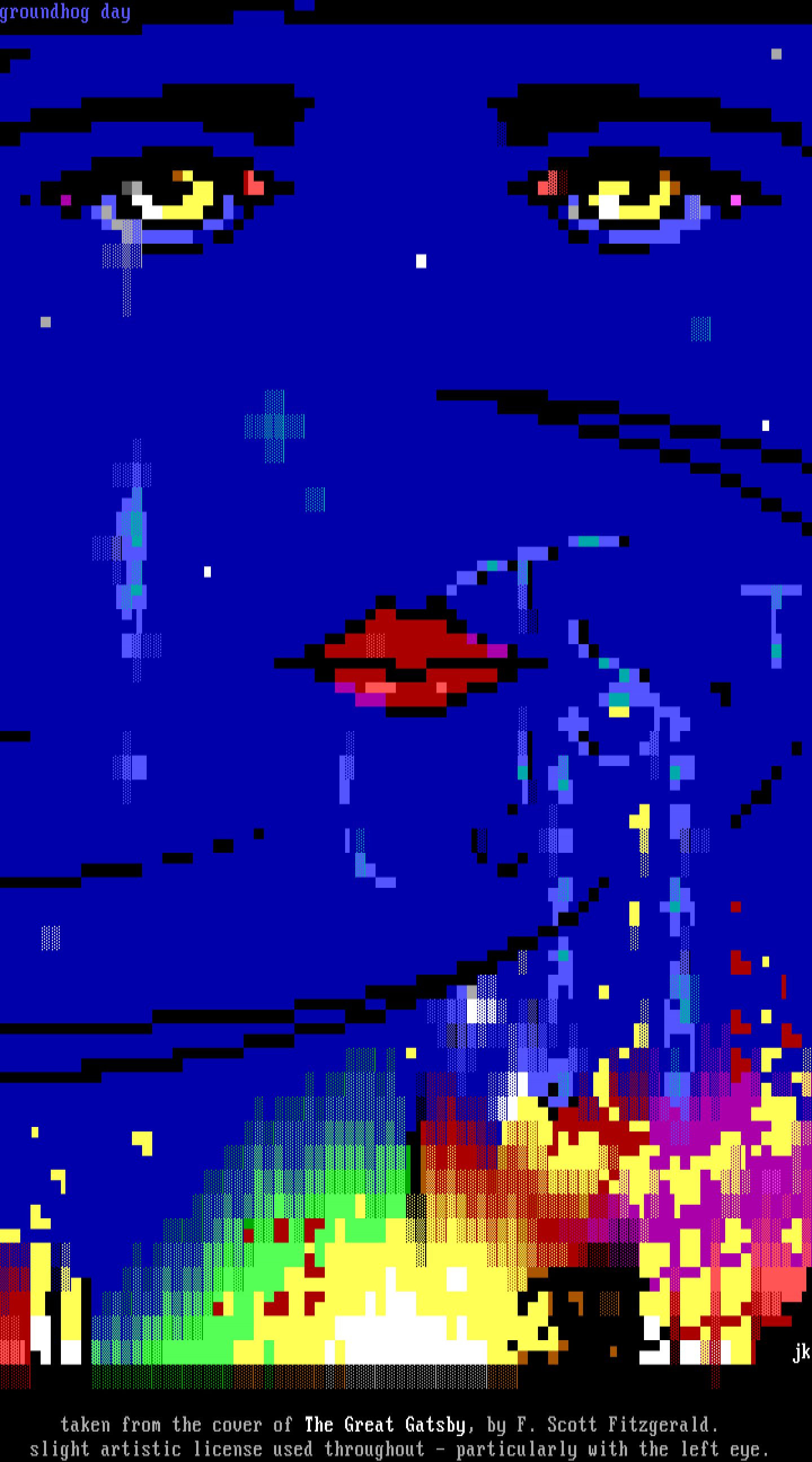 taken from the cover of The Great Gatsby, by F. Scott Fitzgerald.