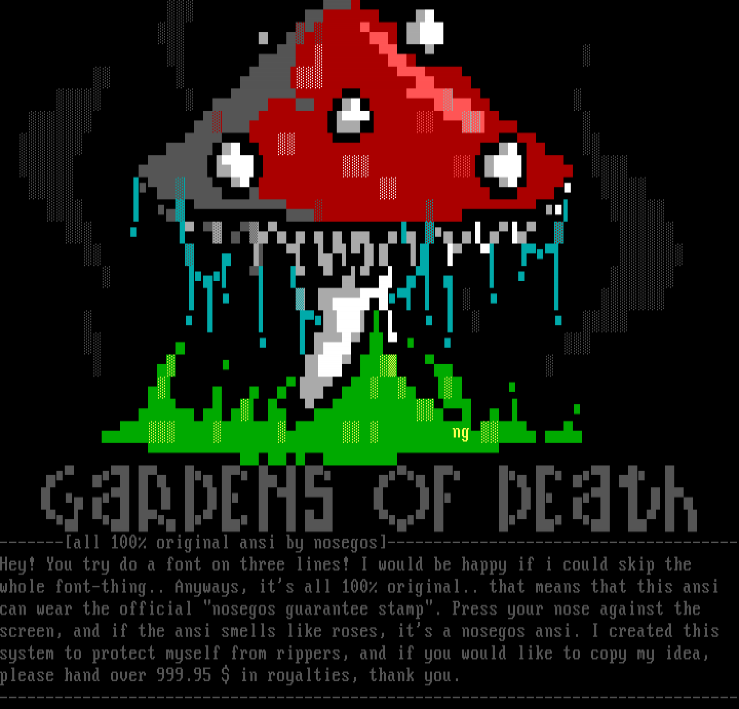 can wear the official nosegos guarantee stamp. Press your nose against the screen, and if the ansi smells like roses, its a nosegos ansi. I created this