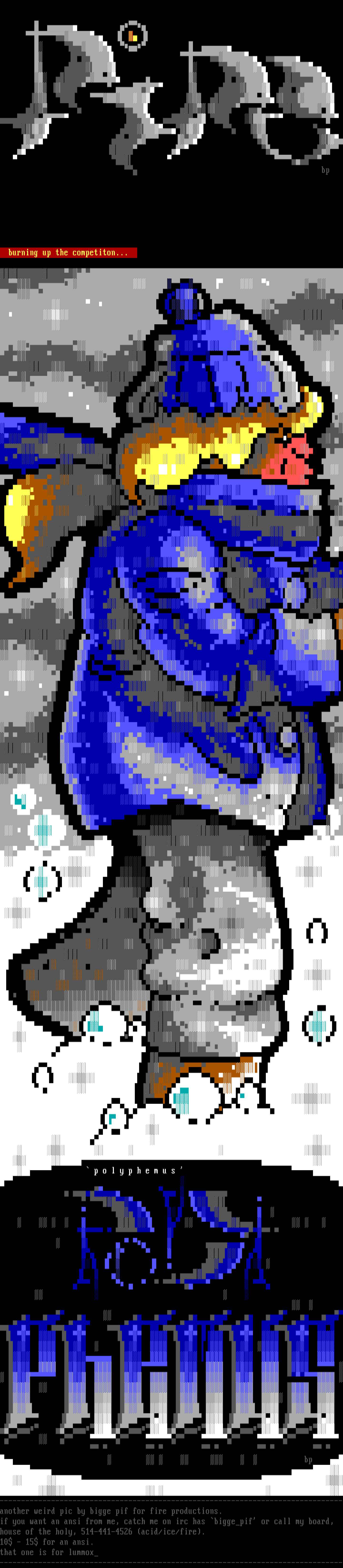 if you want an ansi from me, catch me on irc has biggepif or call my board,