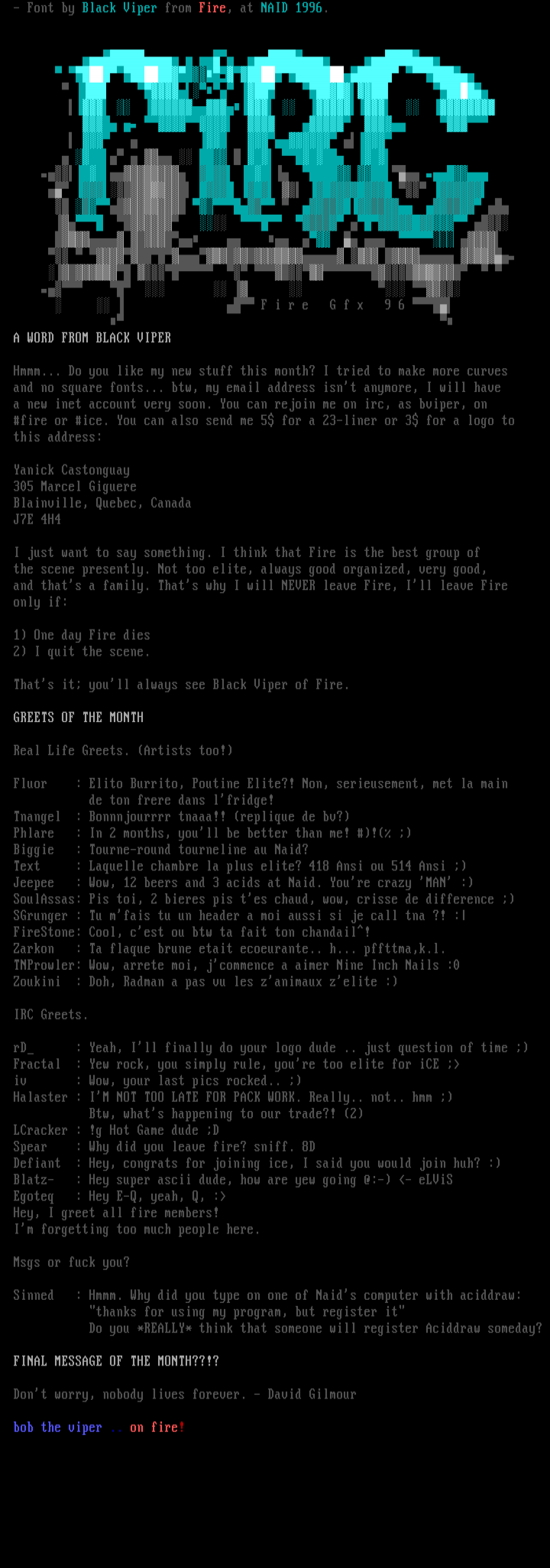 A WORD FROM BLACK VIPER