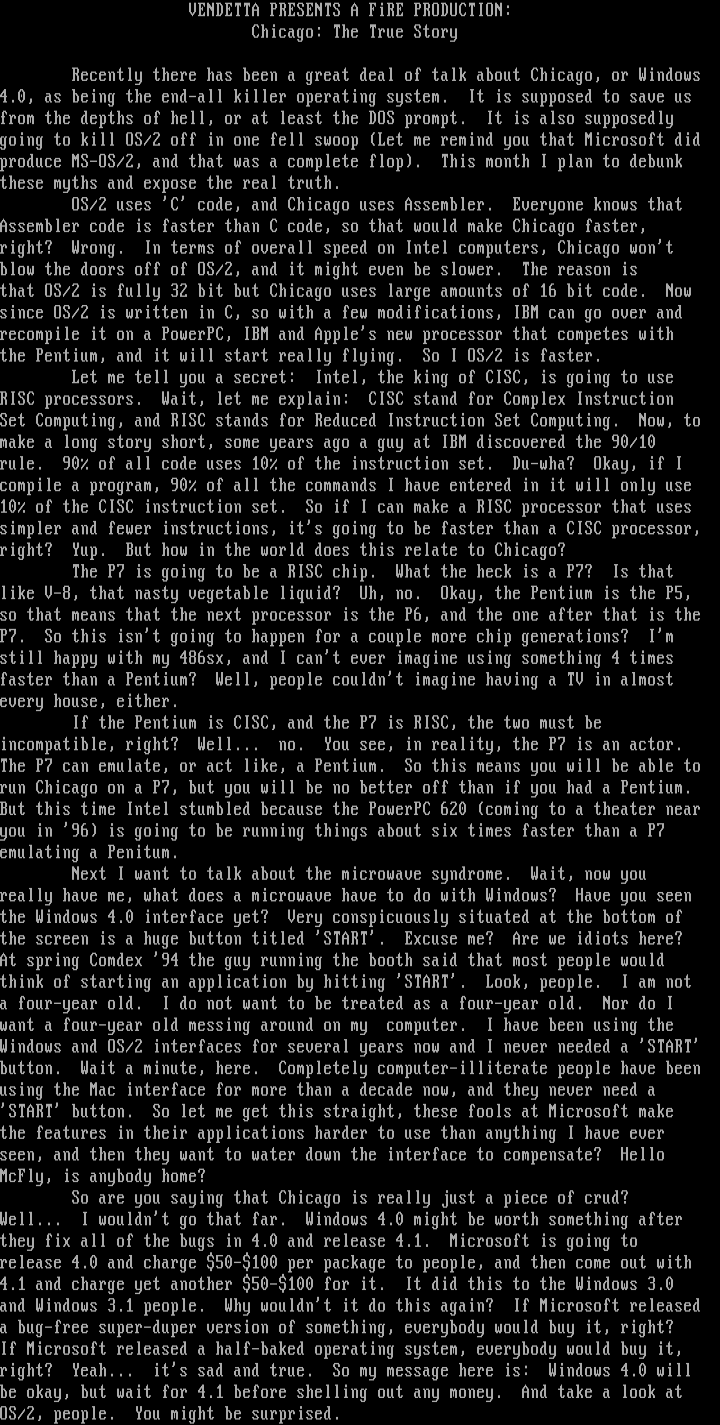 OS/2 uses C code, and Chicago uses Assembler. Everyone knows that