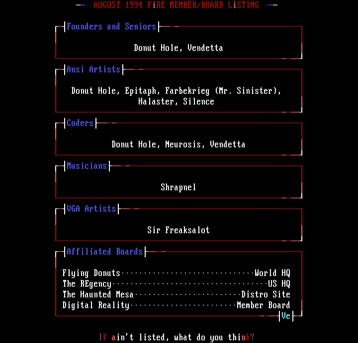 AUGUST 1994 FiRE MEMBER/BOARD LiSTING