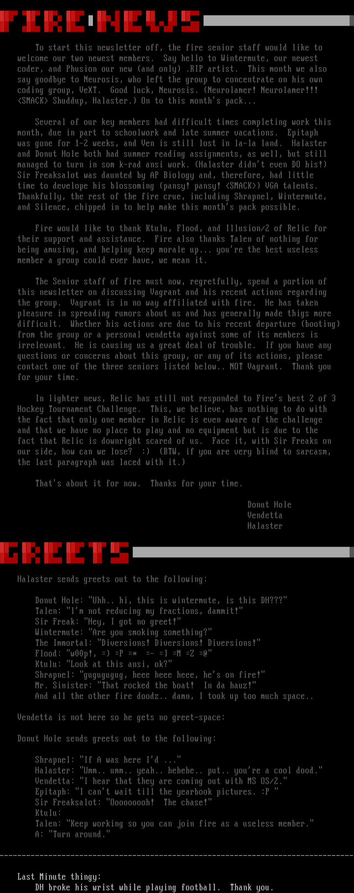 Fire would like to thank Ktulu, Flood, and Illusion/2 of Relic for