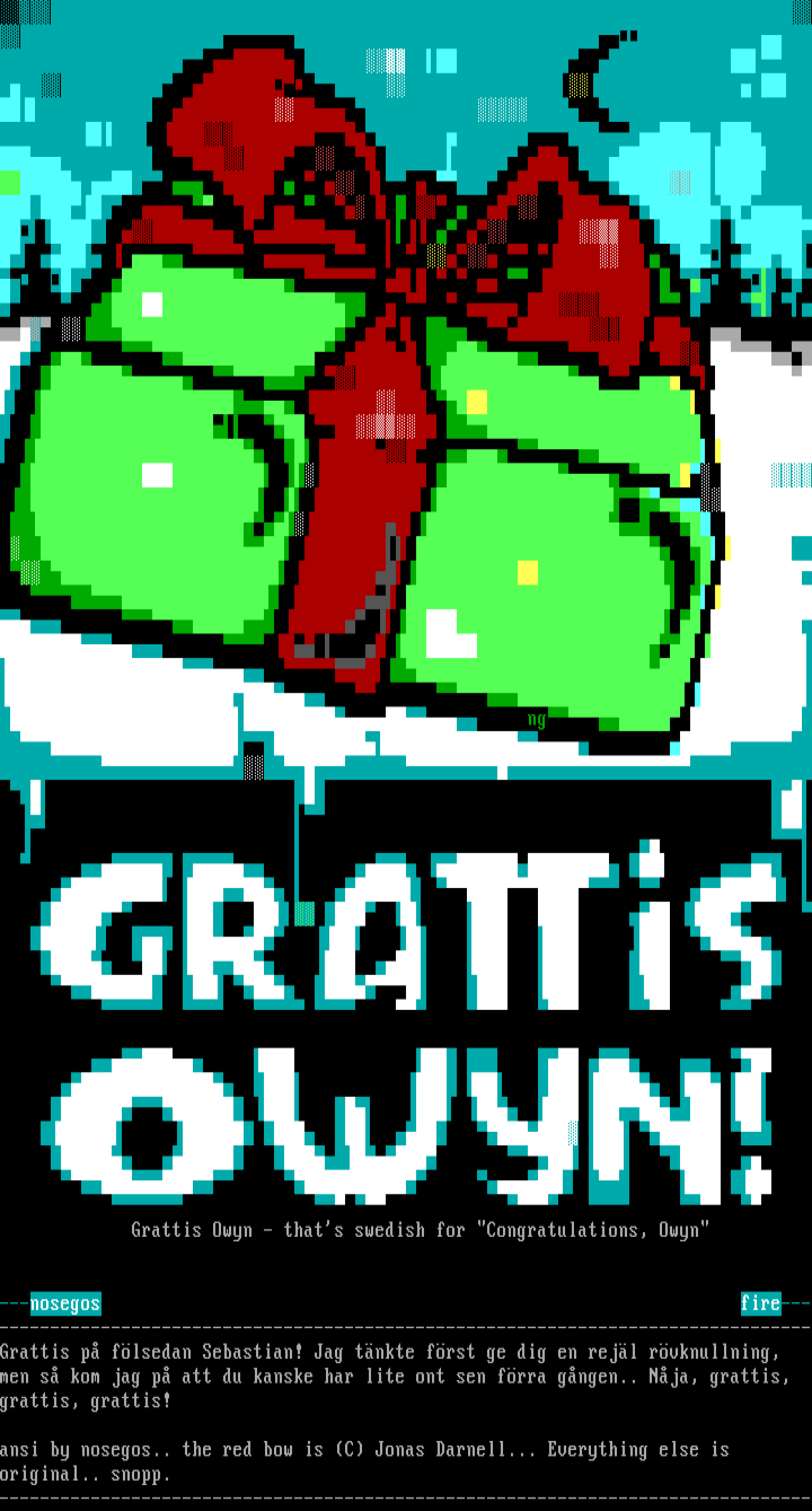 ---nosegos fire-----------------------------------------------------------------------------------Grattis p flsedan Sebastian! Jag tnkte frst ge dig en rejl rvknullning,
