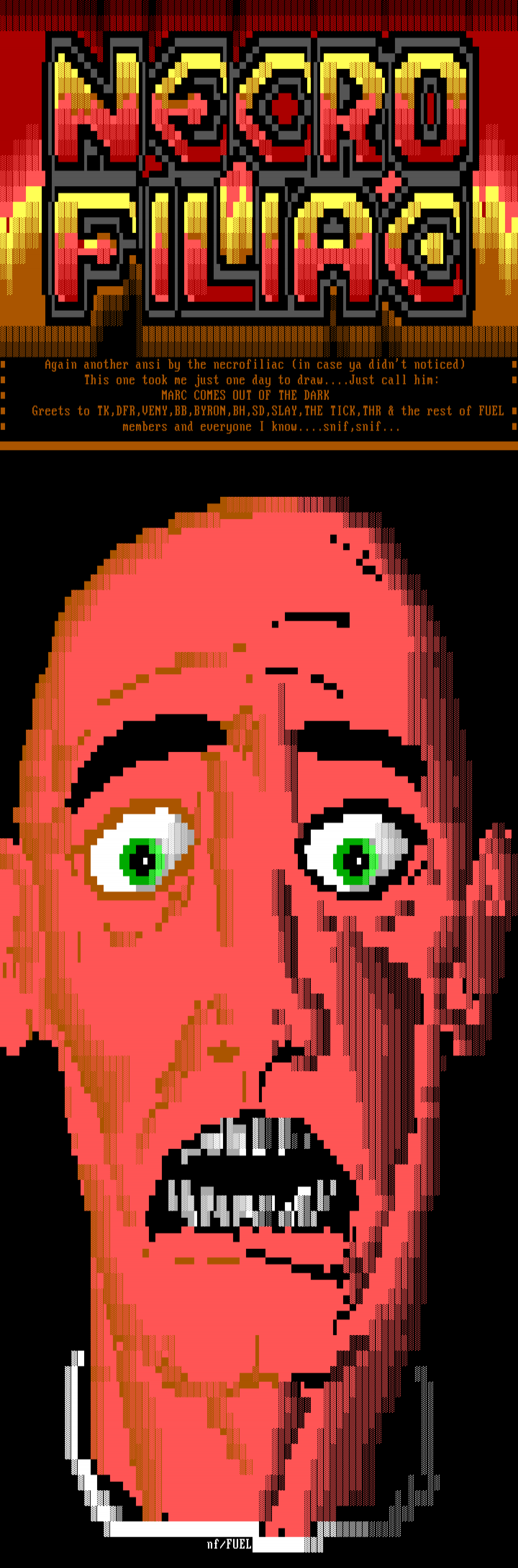 Again another ansi by the necrofiliac in case ya didnt noticed This one took me just one day to draw....Just call him: MARC COMES OUT OF THE DARK