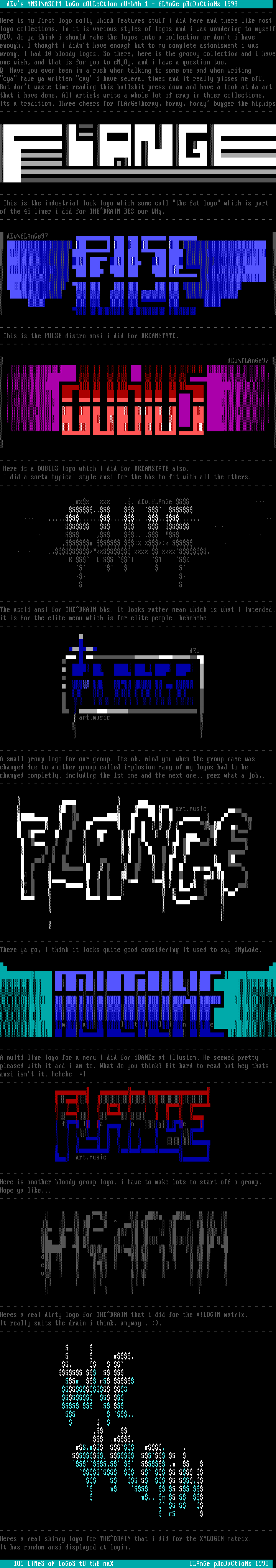dEvs ANS!ASC!! LoGo cOLLeCt!on nUmbAh 1 - fLAnGe pRoDuCtioNs 1998