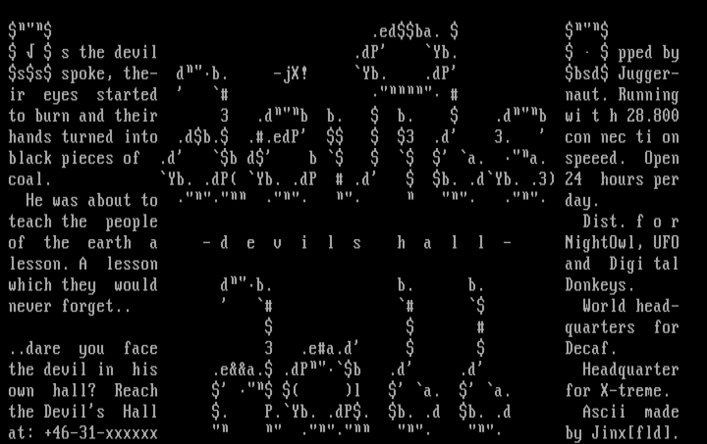 the Devils Hall . P.Yb. .dP. b. .d b. .d Ascii made