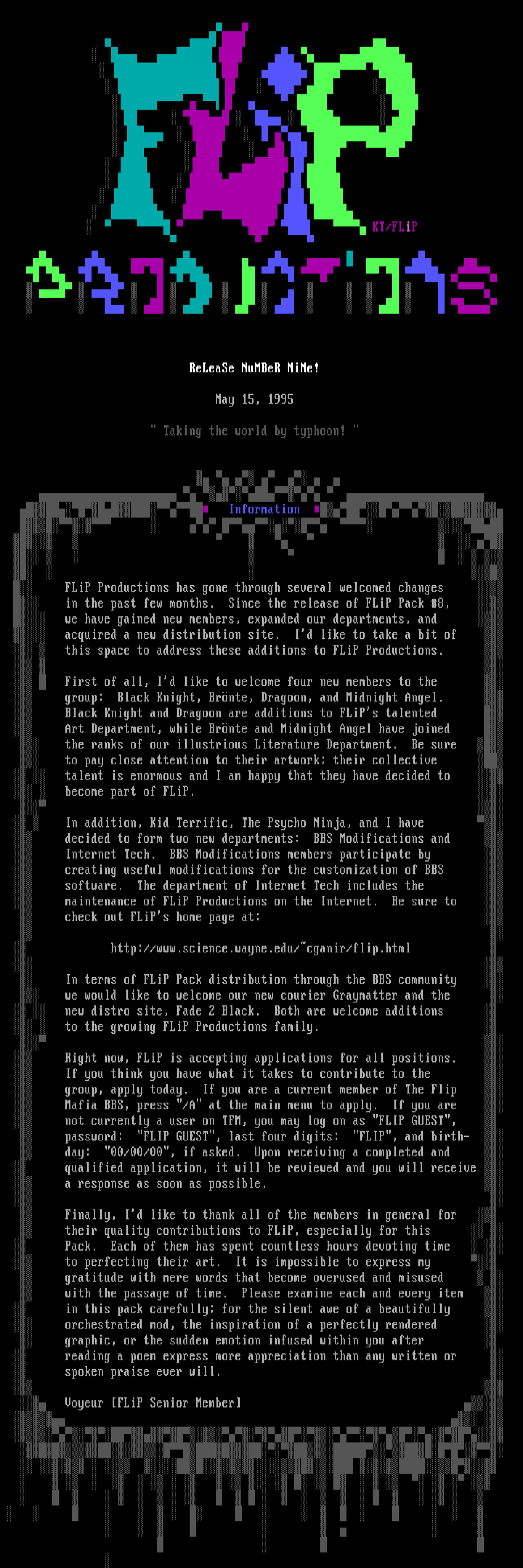 maintenance of FLiP Productions on the Internet. Be sure to