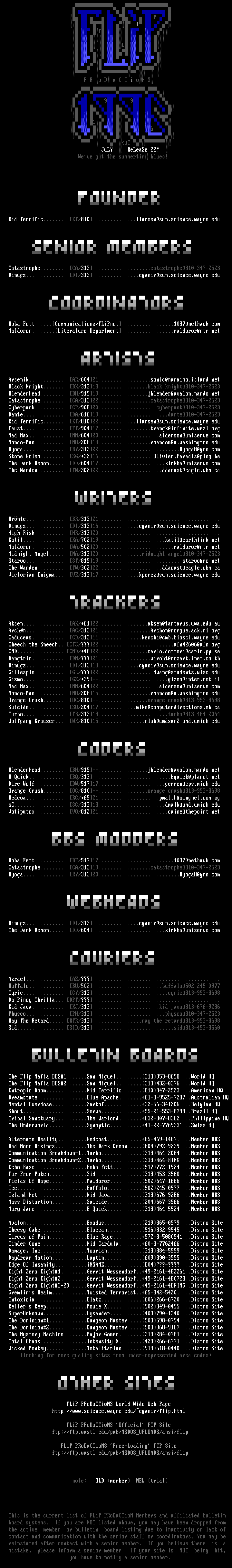 This is the current list of FLiP PRoDuCTioN Members and affiliated bulletin