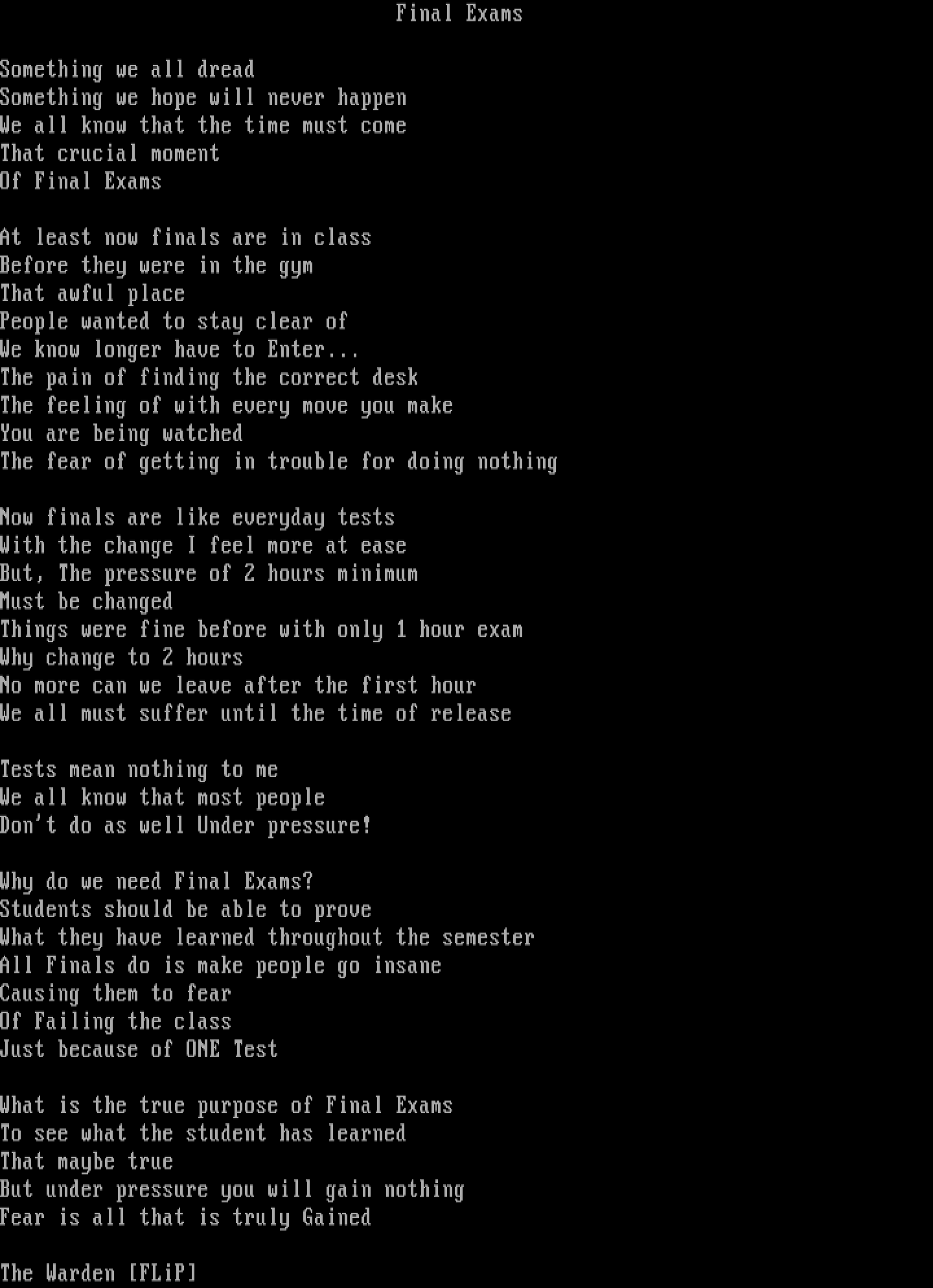 - Final Exams