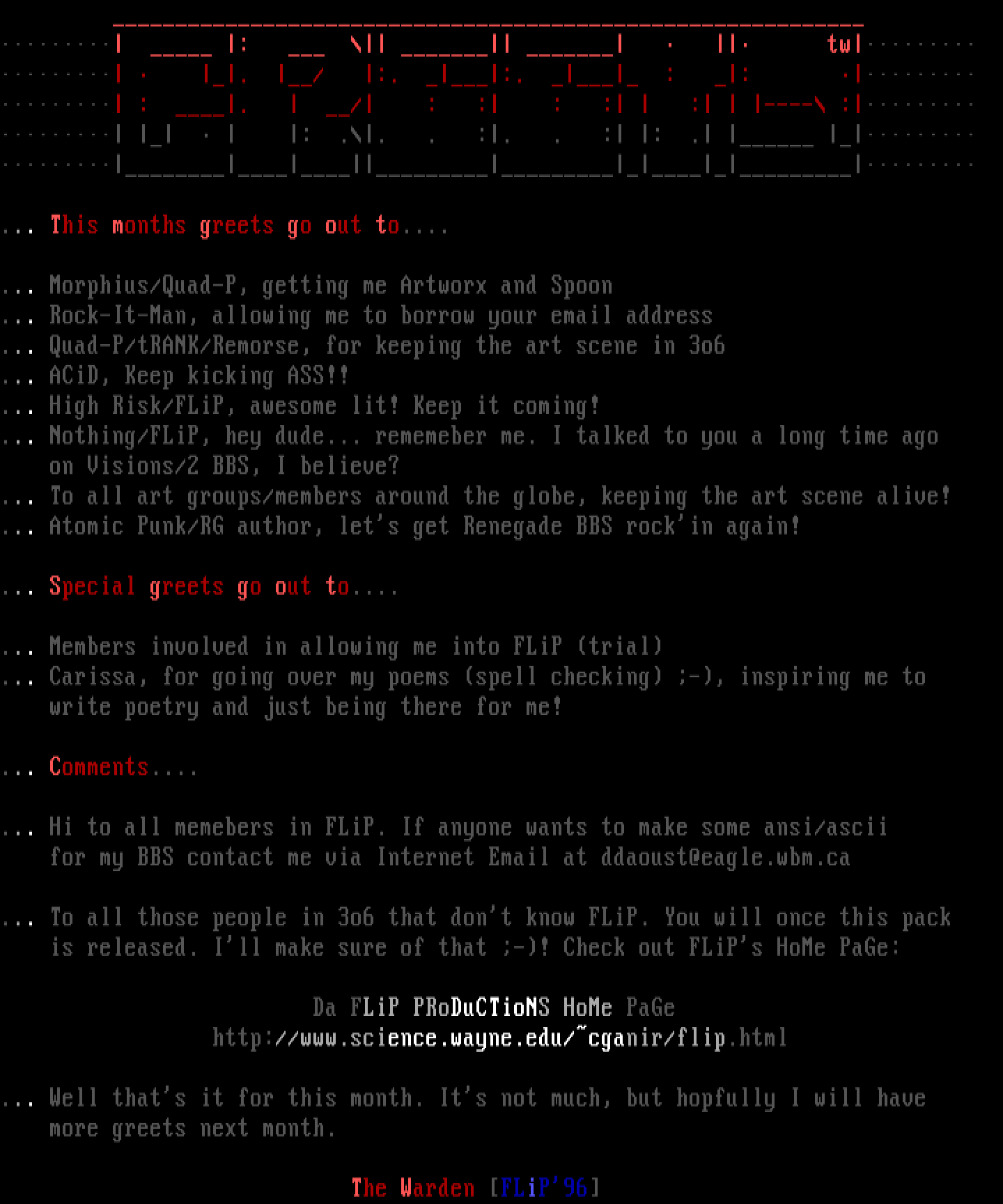 ... Hi to all memebers in FLiP. If anyone wants to make some ansi/ascii