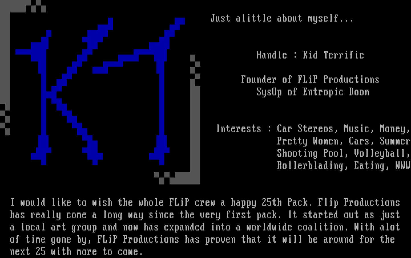 I would like to wish the whole FLiP crew a happy 25th Pack. Flip Productions has really come a long way since the very first pack. It started out as just a local art group and now has expanded into a worldwide coalition. With alot