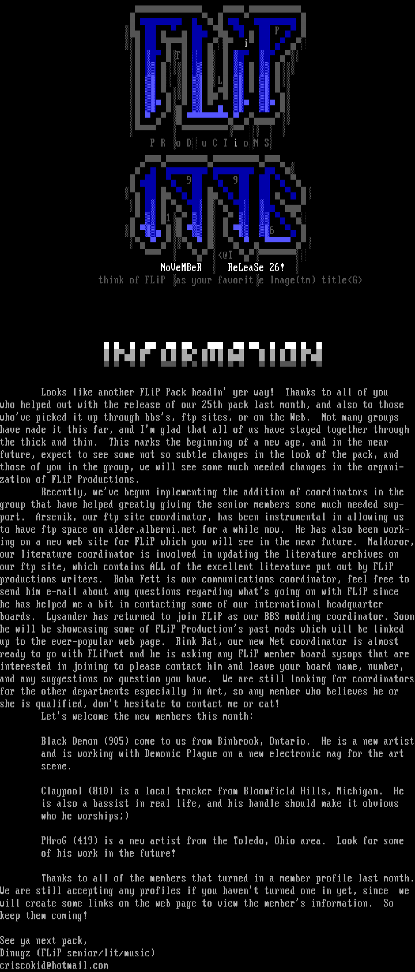boards. Lysander has returned to join FLiP as our BBS modding coordinator. Soonhe will be showcasing some of FLiP Productions past mods which will be linked