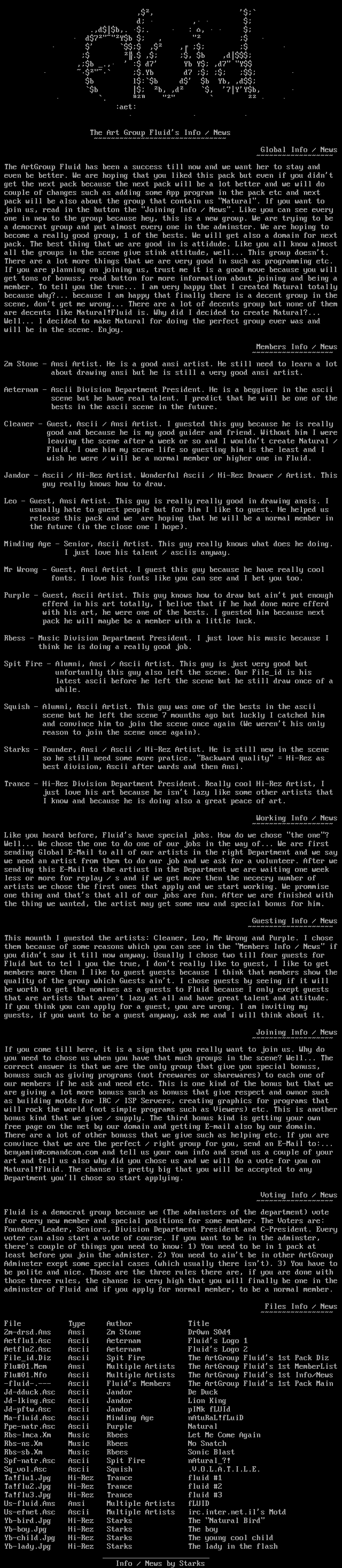 Flu01.Nfo Ascii Multiple Artists The ArtGroup Fluids 1st Info/News