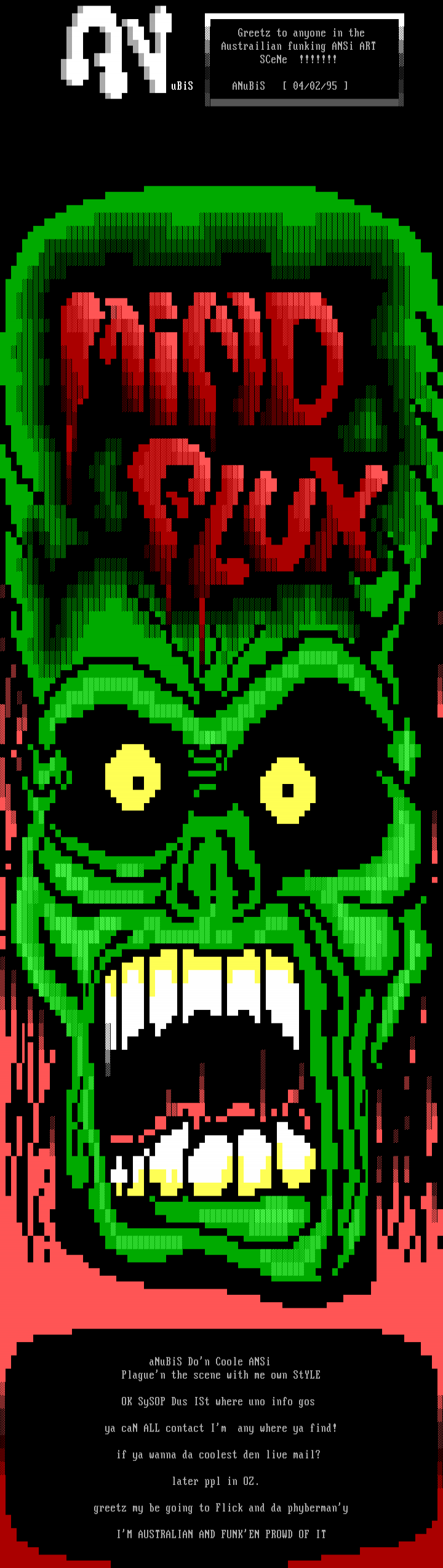 aNuBiS Don Coole ANSi Plaguen the scene with me own StYLE OK SySOP Dus ISt where uno info gos ya caN ALL contact Im any where ya find! if ya wanna da coolest den live mail? later ppl in OZ. greetz my be going to Flick and da phybermany IM AUSTRALIAN AND FUNKEN PROWD OF IT