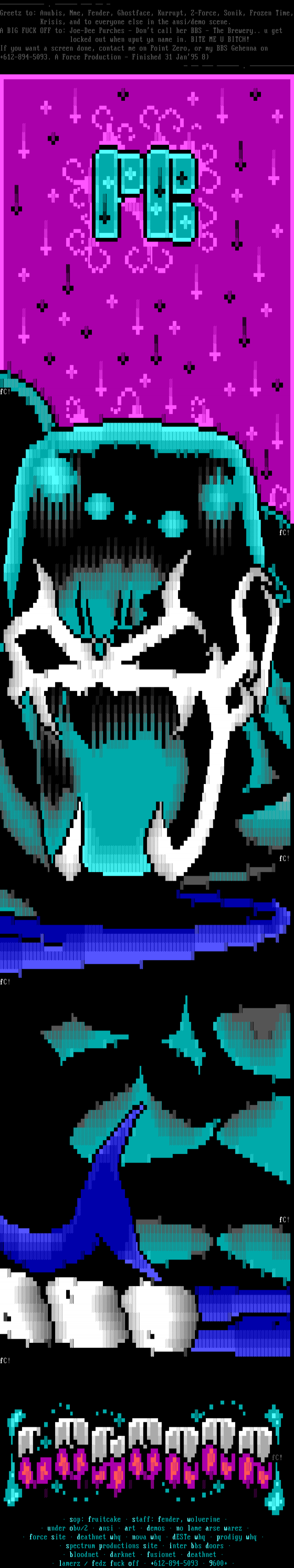 If you want a screen done, contact me on Point Zero, or my BBS G
