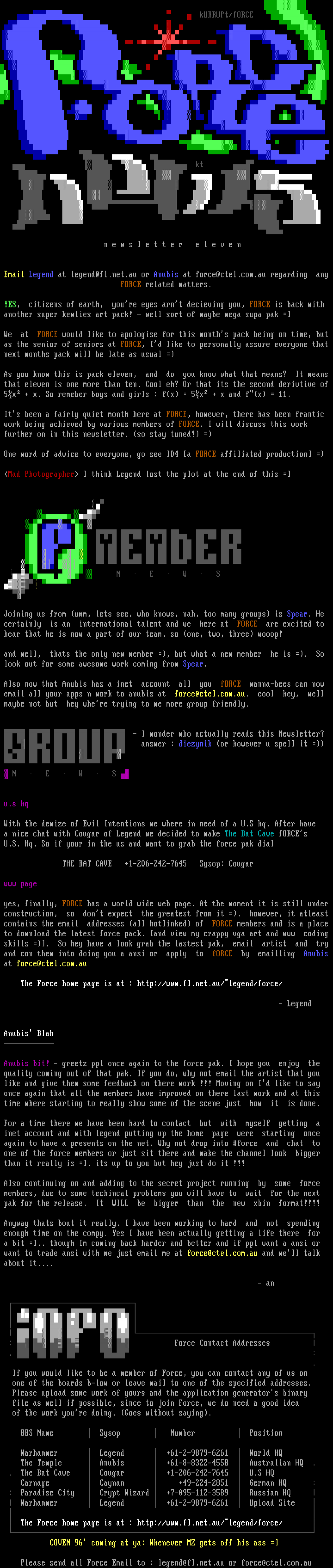 Email Legend at legend@fl.net.au or Anubis at force@ctel.com.au regarding any