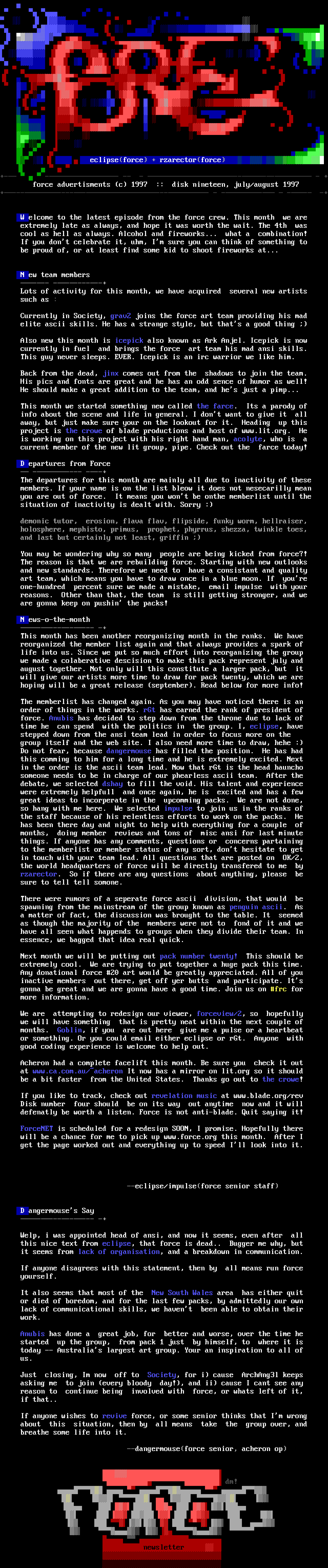 +- -- -- - ---- - + force advertisments c 1997 :: disk nineteen, july/august 1997