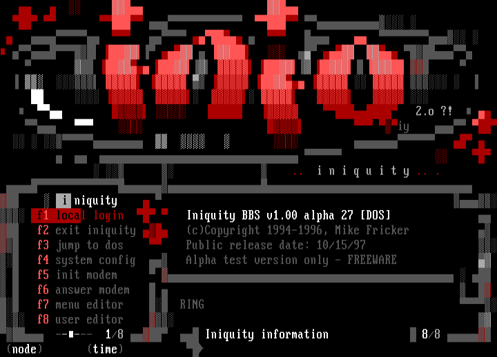 iniquity f1 local login Iniquity BBS v1.00 alpha 27 DOS