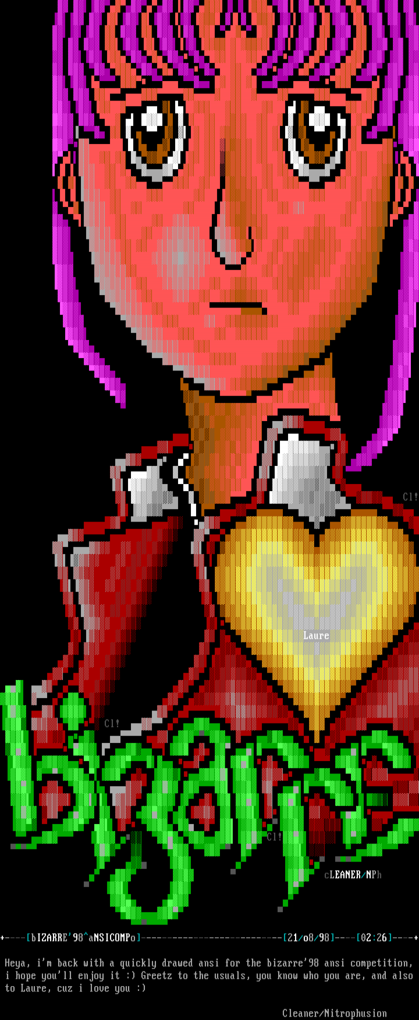 Heya, im back with a quickly drawed ansi for the bizarre98 ansi competition,