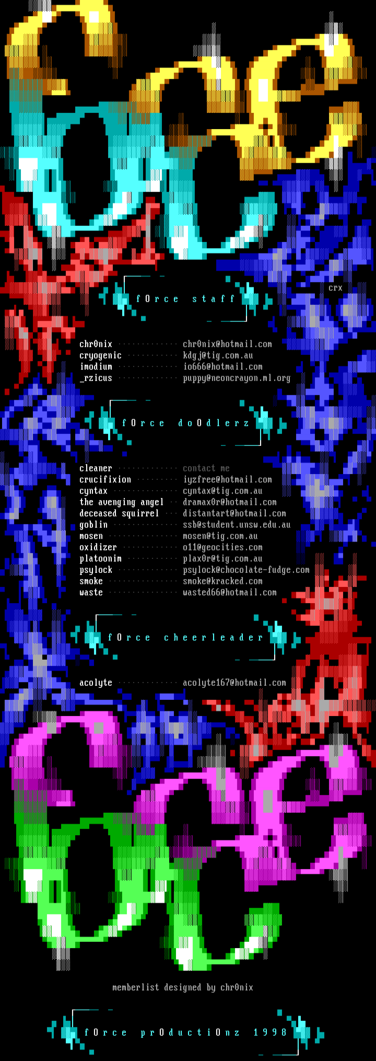 crx f O r c e s t a f f chr0nix chr0nix@hotmail.com cryogenic kdgj@tig.com.au