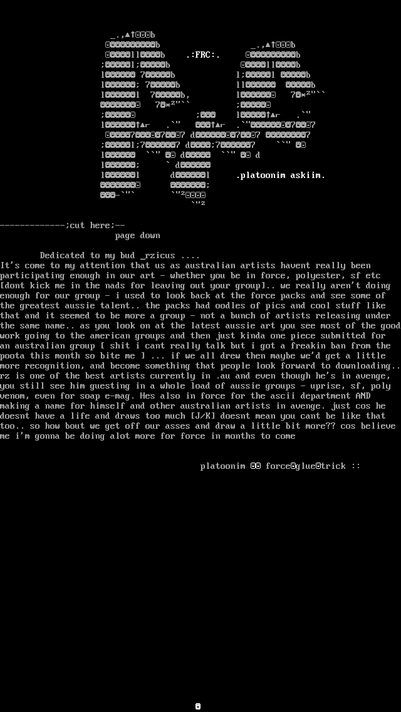 participating enough in our art - whether you be in force, polyester, sf etc