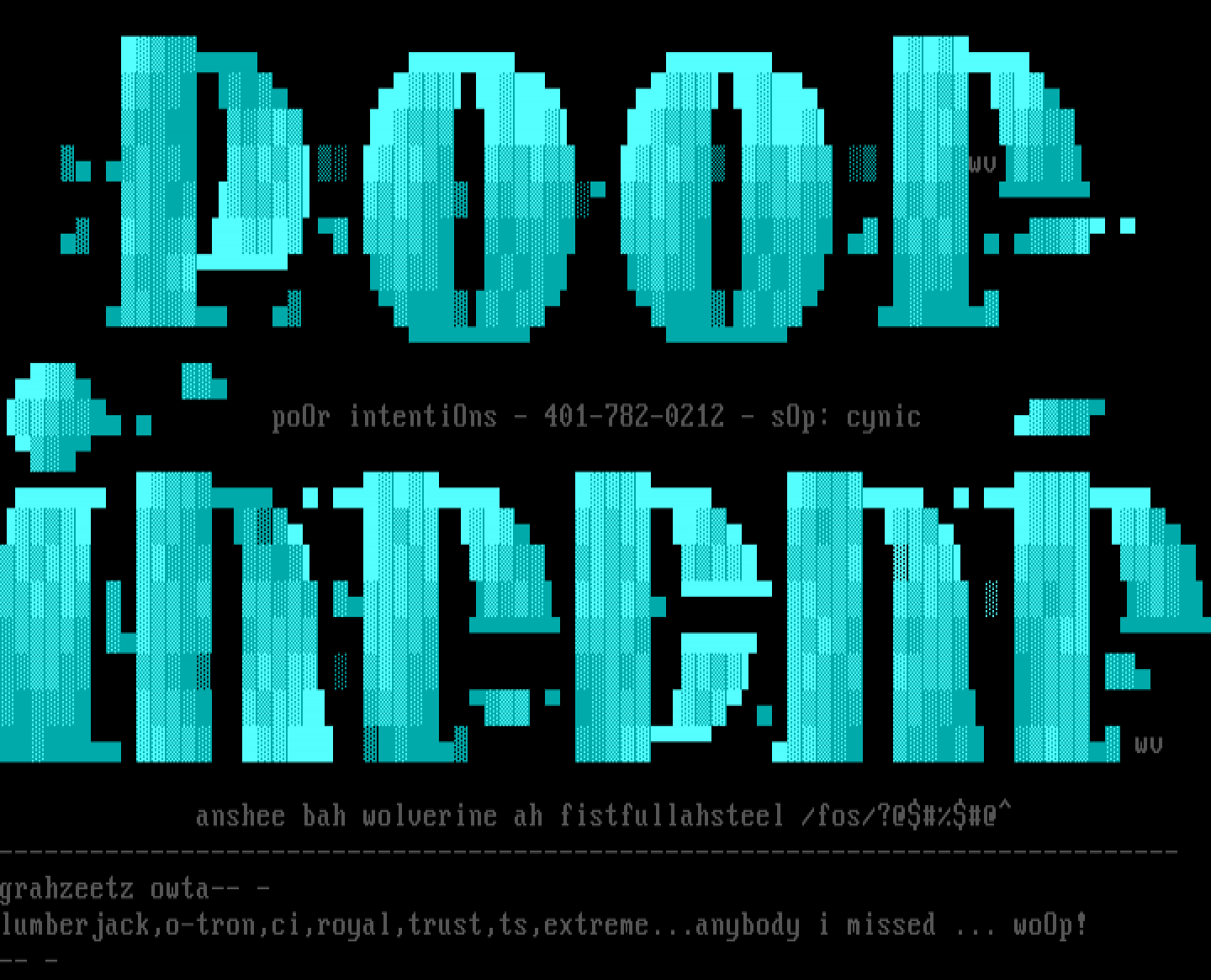 poOr intentiOns - 401-782-0212 - sOp: cynic