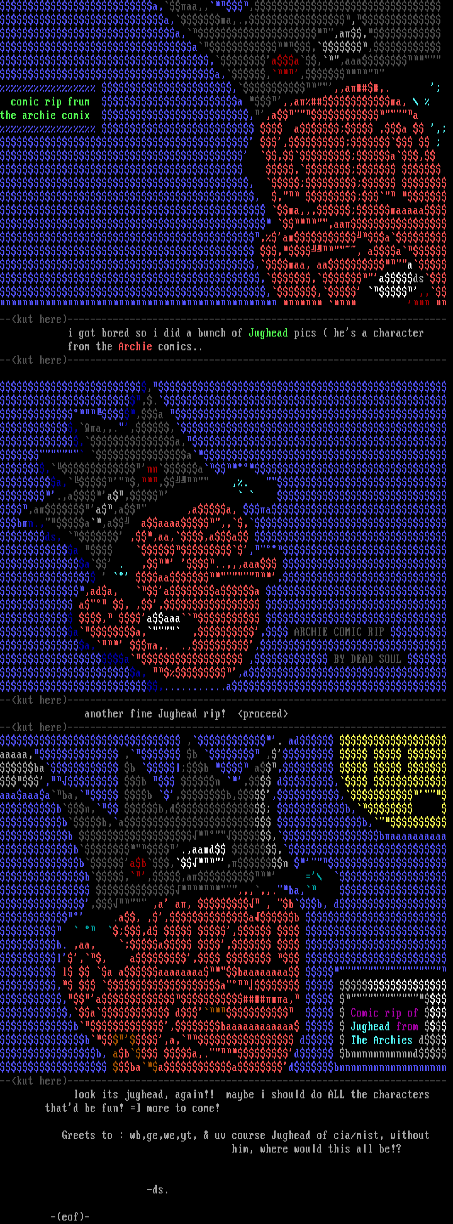 Greets to : wb,ge,we,yt, uv course Jughead of cia/mist, without
