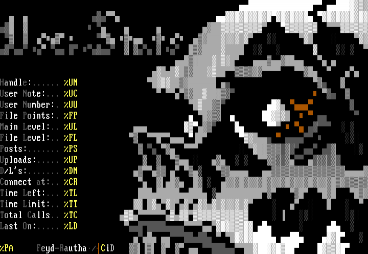 Handle:...... UserNote:... UserNumber:. FilePoints:. MainLevel:.. FileLevel:.. Posts:....... Uploads:..... D/Ls:....... Connectat:.. TimeLeft:... TimeLimit:.. TotalCalls.. LastOn:..... Feyd-Rautha/CiD UNUCUUFPULFLPSUPDNCRTLTTTCLDPA