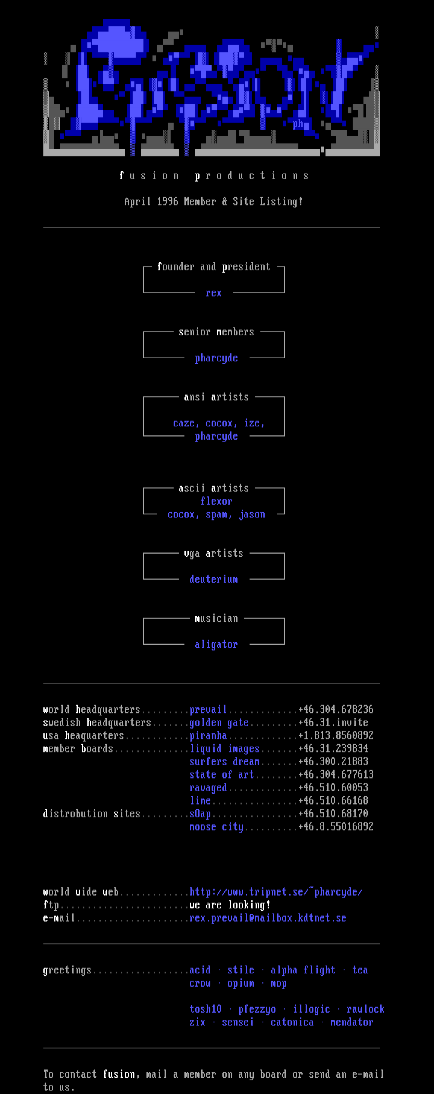 To contact fusion, mail a member on any board or send an e-mail