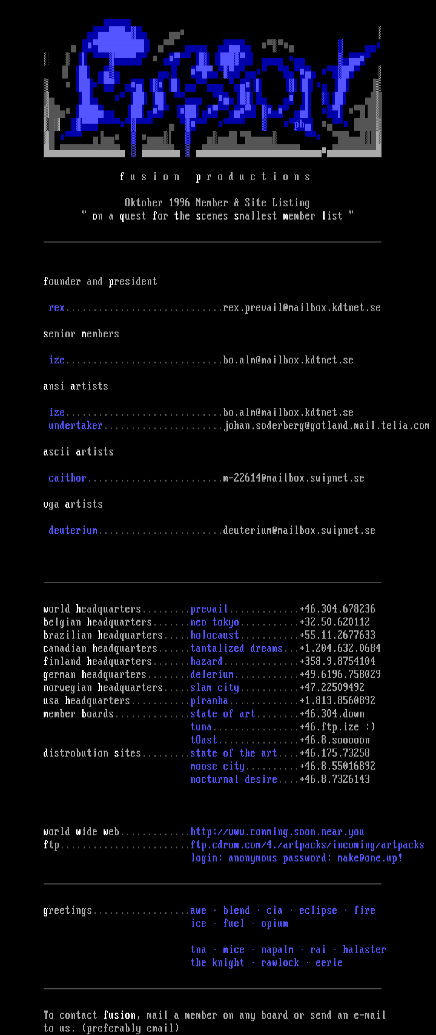 To contact fusion, mail a member on any board or send an e-mail