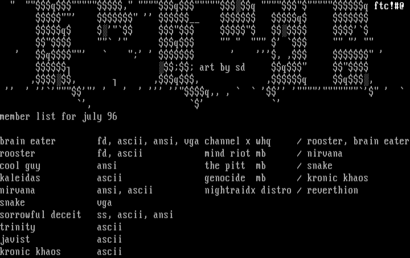 brain eater fd, ascii, ansi, vga channel x whq / rooster, brain eaterrooster fd, ascii mind riot mb / nirvana
