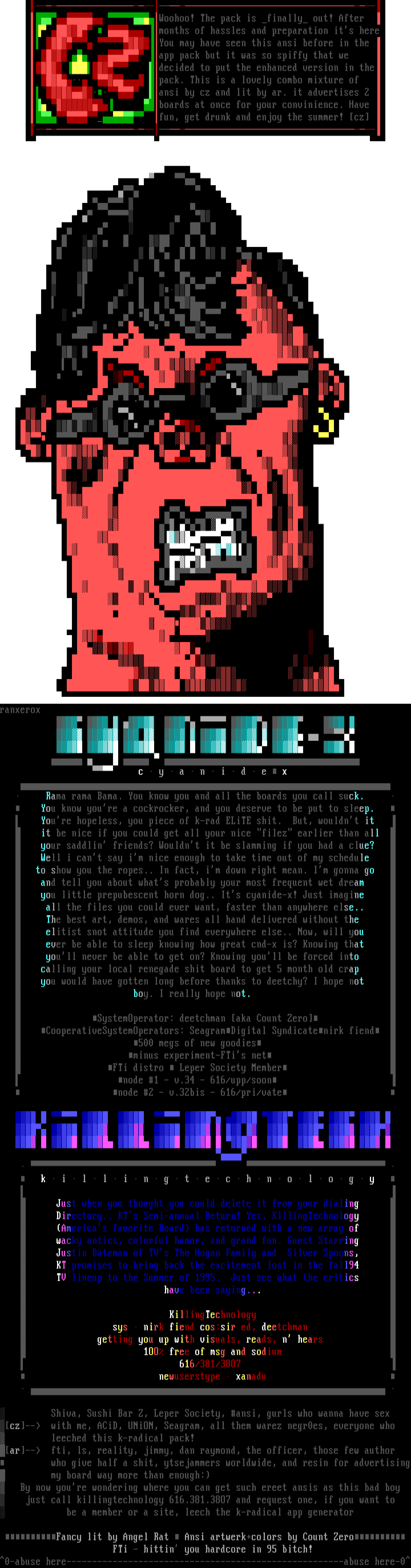 cz-- with me, ACiD, UNiON, Seagram, all them warez negr0es, everyone who