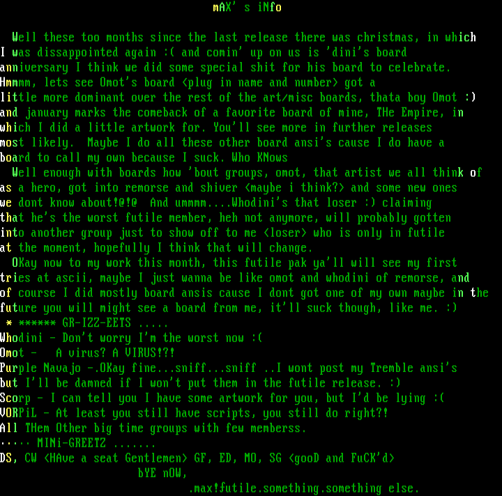 tries at ascii, maybe I just wanna be like omot and whodini of remorse, and