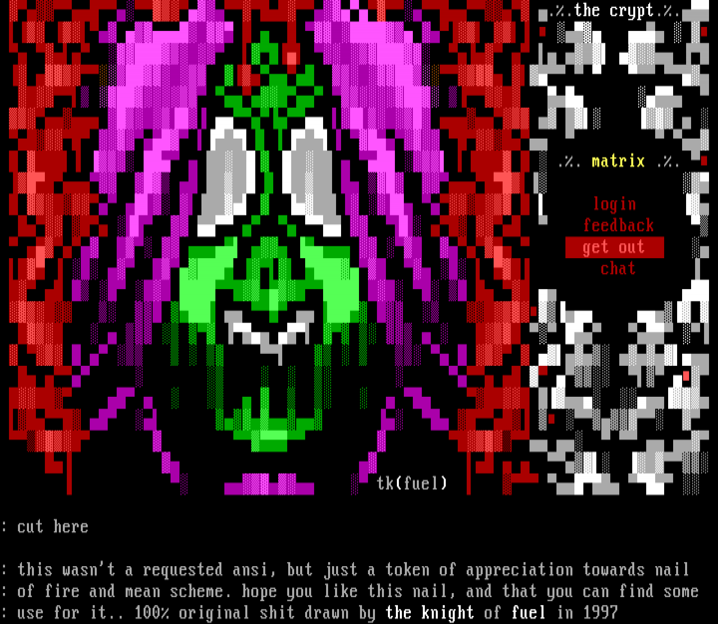 : use for it.. 100 original shit drawn by the knight of fuel in 1997
