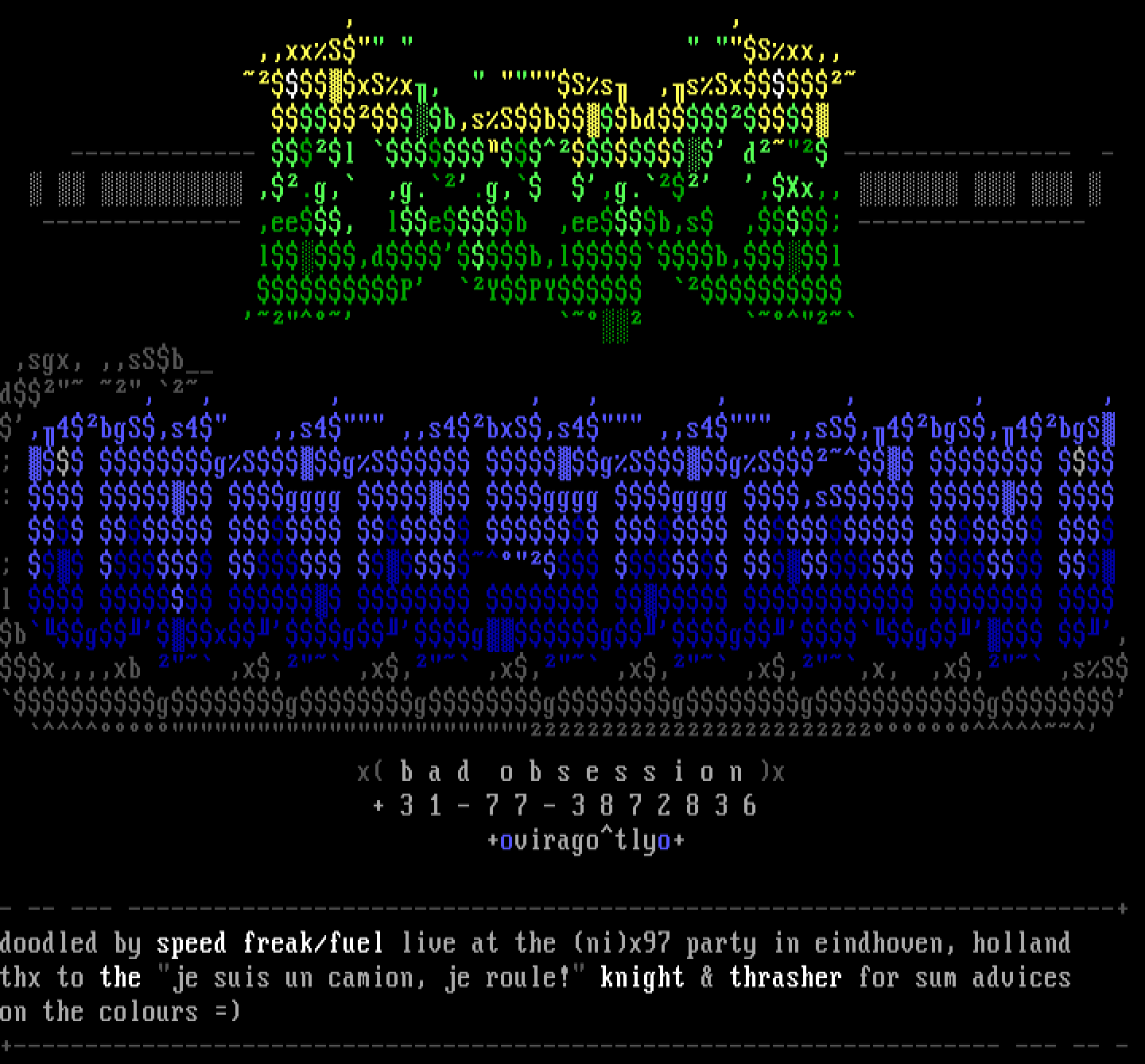 - -- --- ---------------------------------------------------------------------+ doodled by speed freak/fuel live at the nix97 party in eindhoven, holland