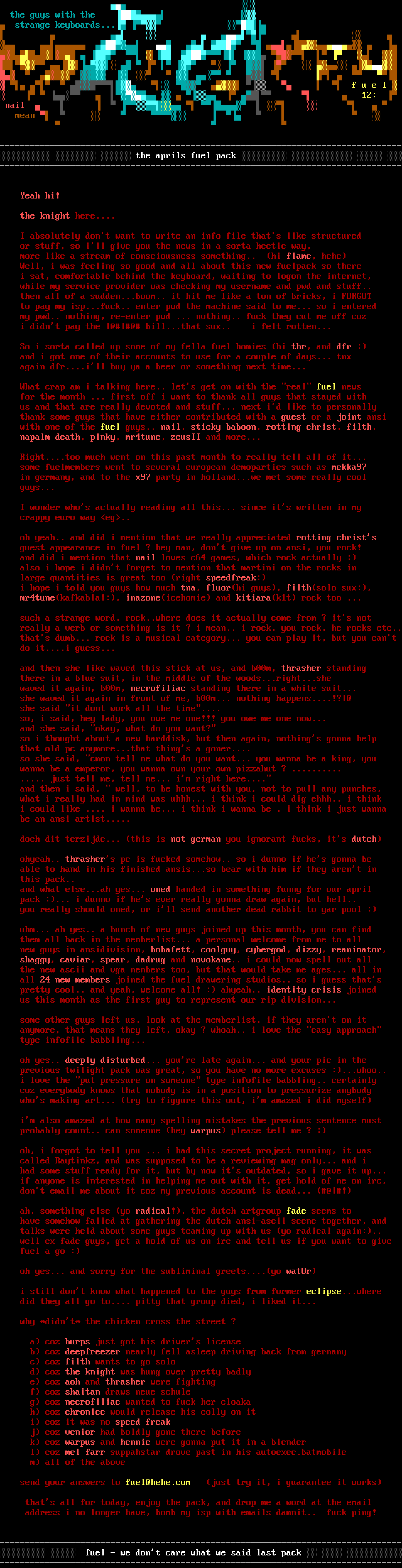 have somehow failed at gathering the dutch ansi-ascii scene together, and